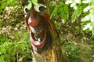 Entlang des Waldgeisterwegs im Otterbachtal stehen skurrile Figuren, die vom Künstler Volker Dahl in unzähligen…